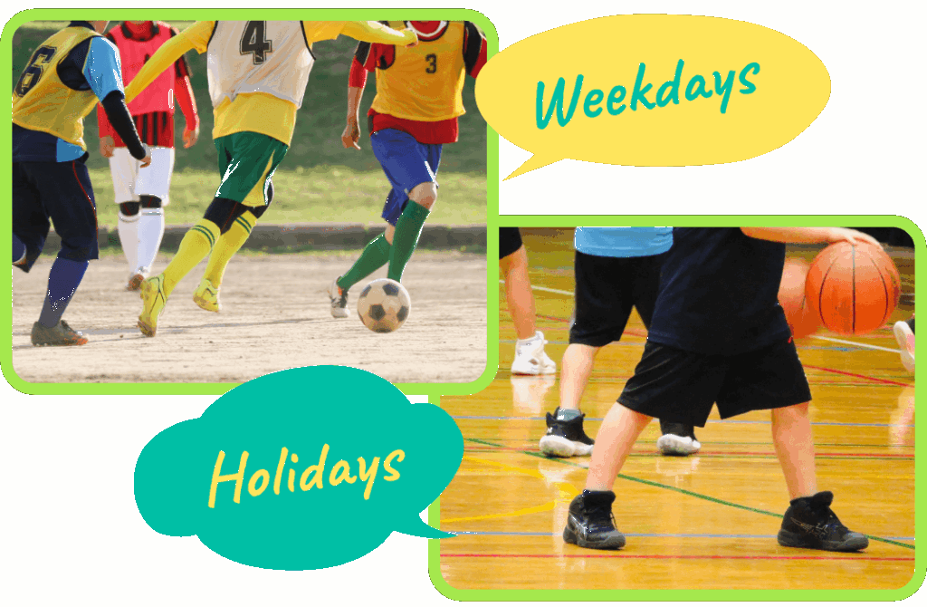 平日はフットサルやサッカーを中心とした運動教室、土日には野球やバスケットなど専門スポーツにも挑戦可能。